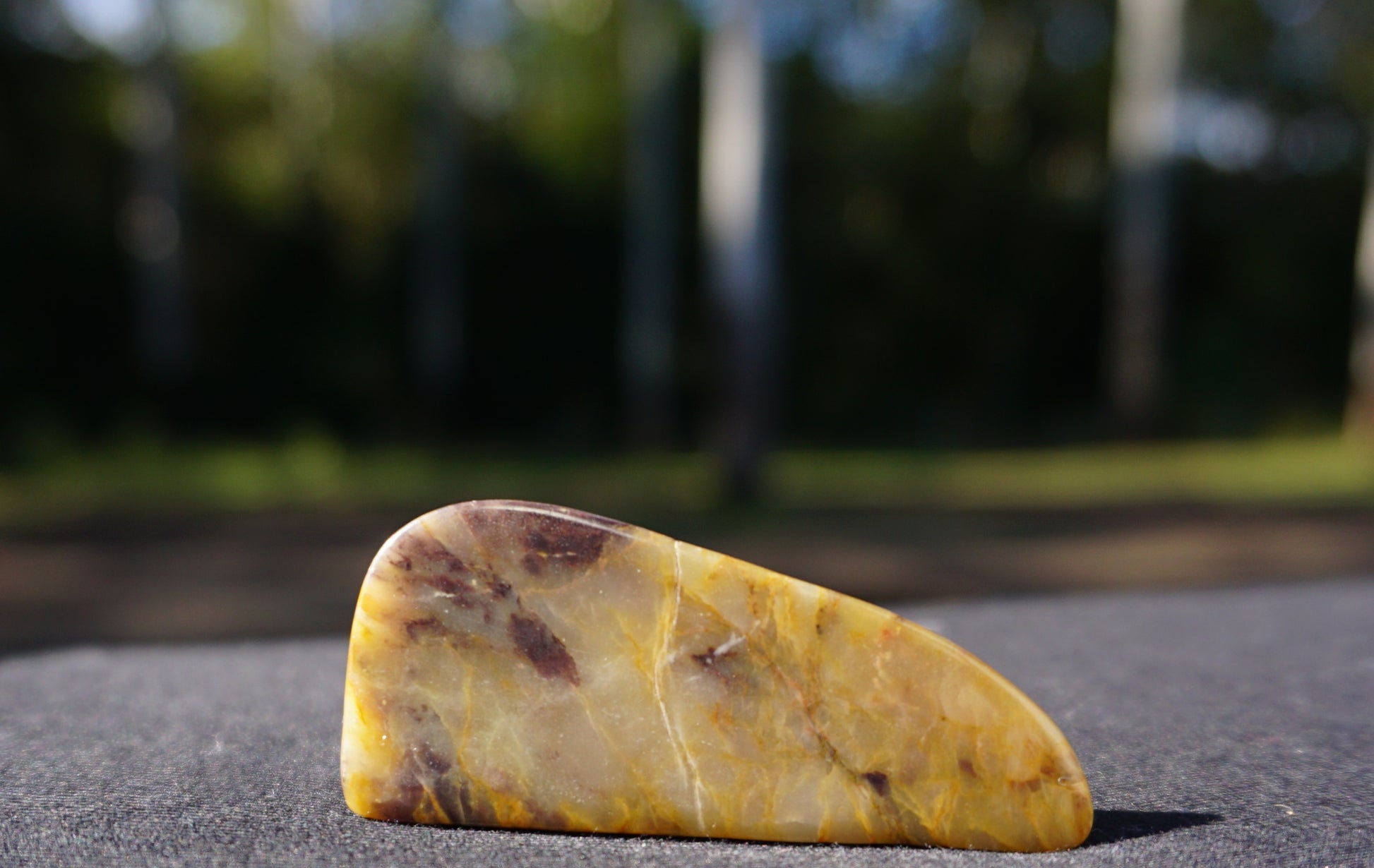 Bring the raw beauty of nature into your home with this one-of-a-kind hand-cut and polished Bucca Jasper freeform stone, sourced locally from Bucca, NSW.